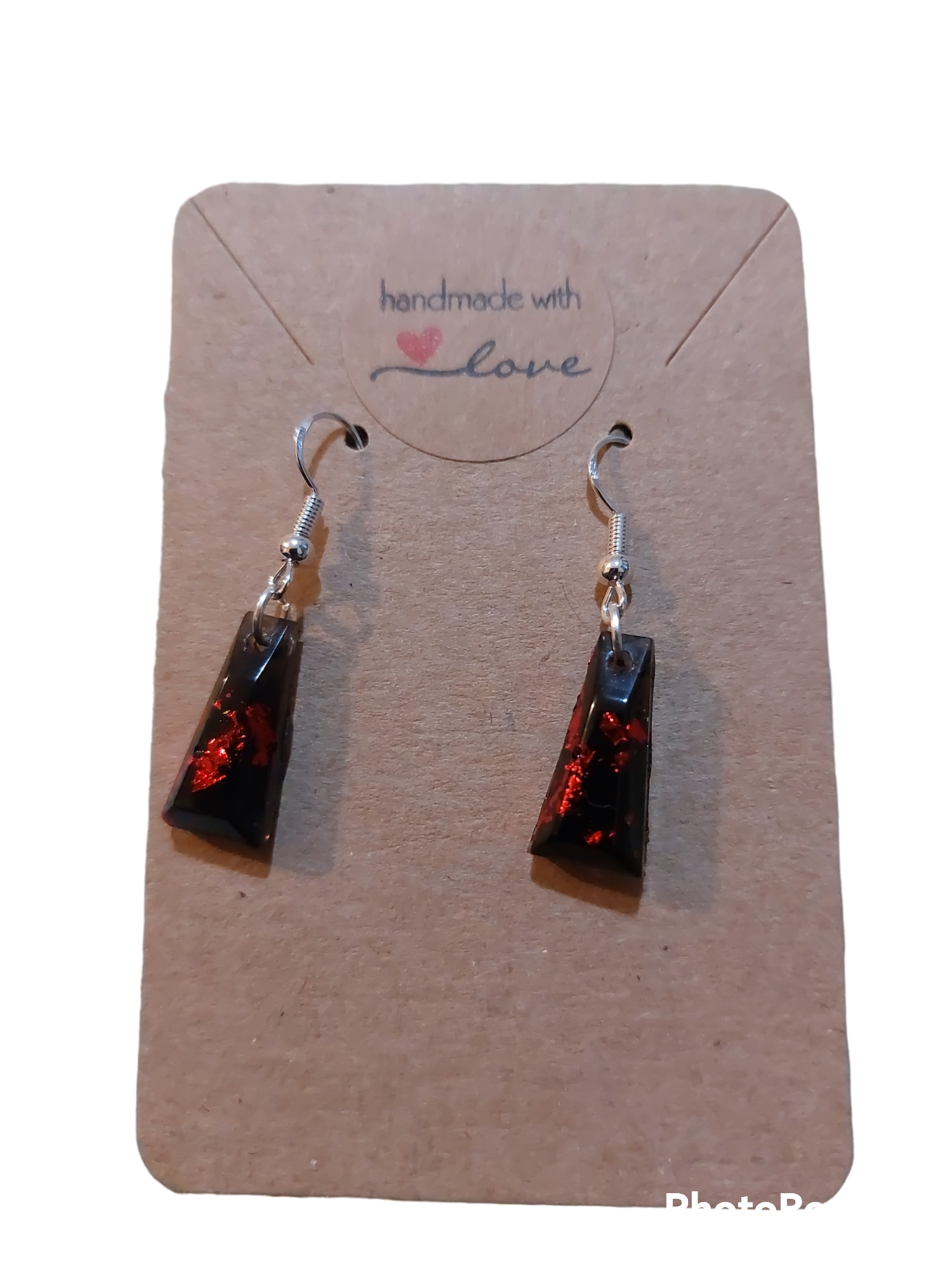 Black earrings with red leaf to add a touch of shimmer. Dainty earrings very classy and elegant