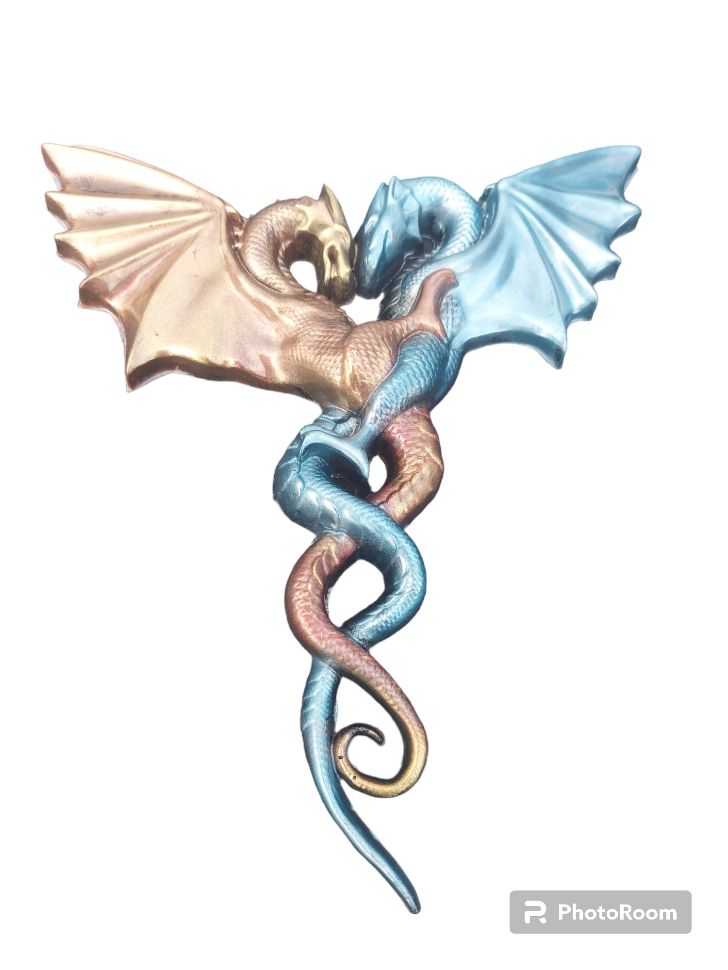 Beautifully unique entwined dragons. Ideal as a wedding or anniversary gift or even a just because gift! Fitted with a loop so it can be hung on the wall.